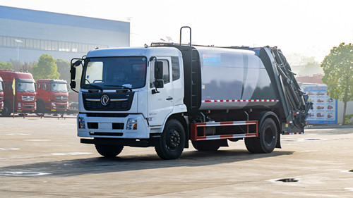 東風多利卡壓縮式垃圾車改裝容積10~12m3,選用3950和4500兩種軸距底盤,箱體采用邊4底5、Q235碳鋼板,帶有前推板和刮板,帶有污水箱。雙向壓縮,標配帶掛桶反轉(zhuǎn)機構(gòu),可選其他樣式后翻轉(zhuǎn)。